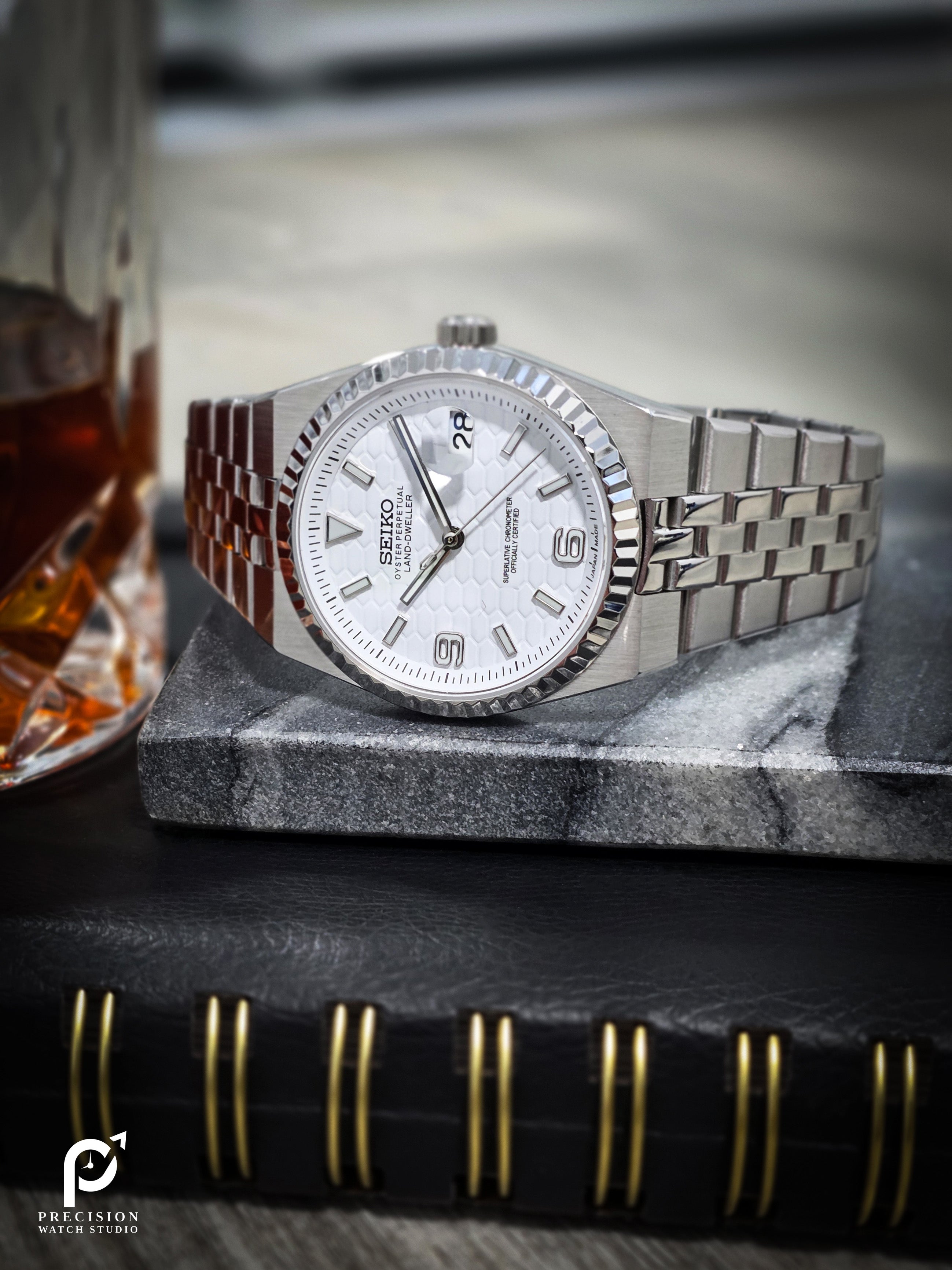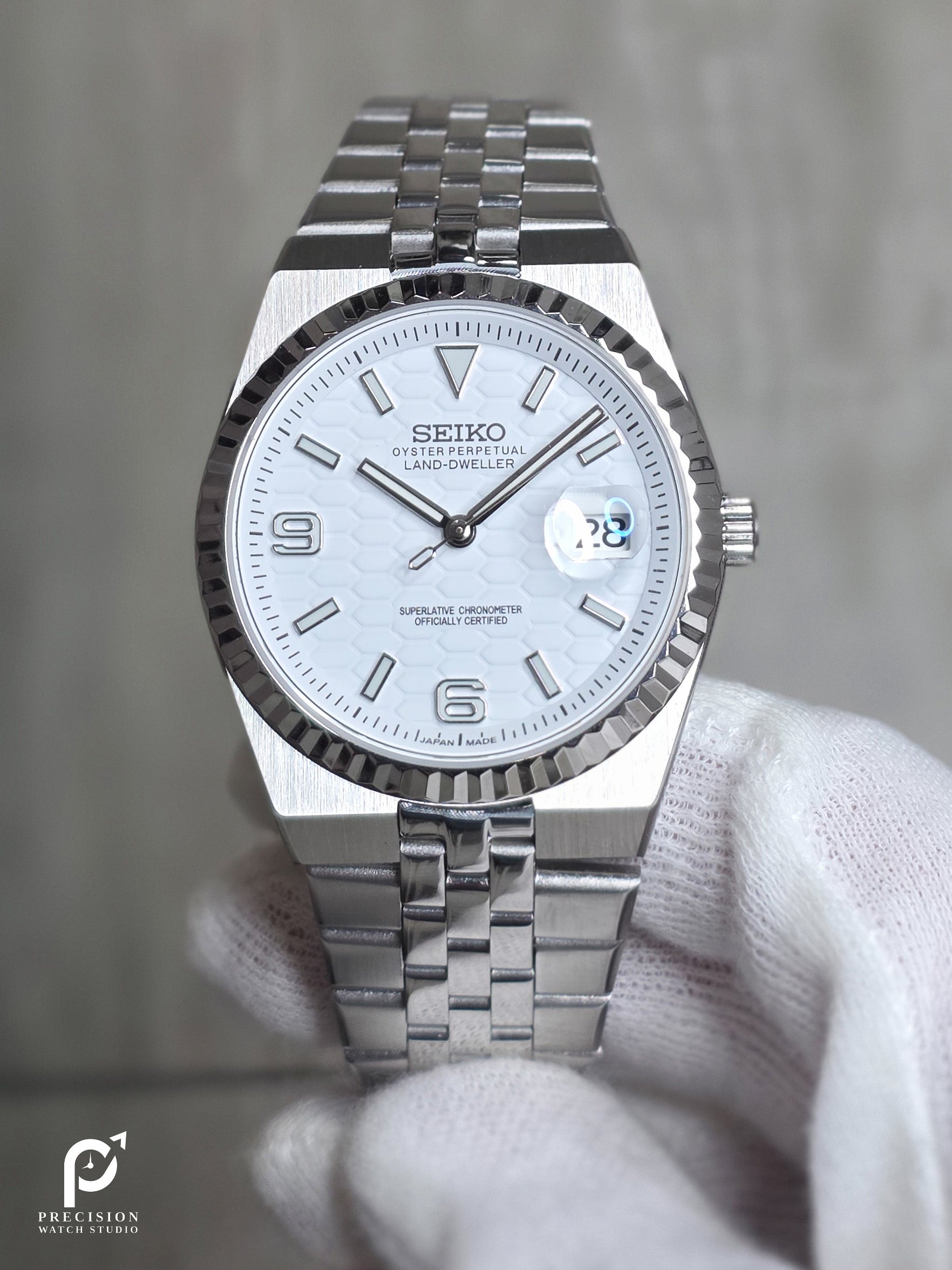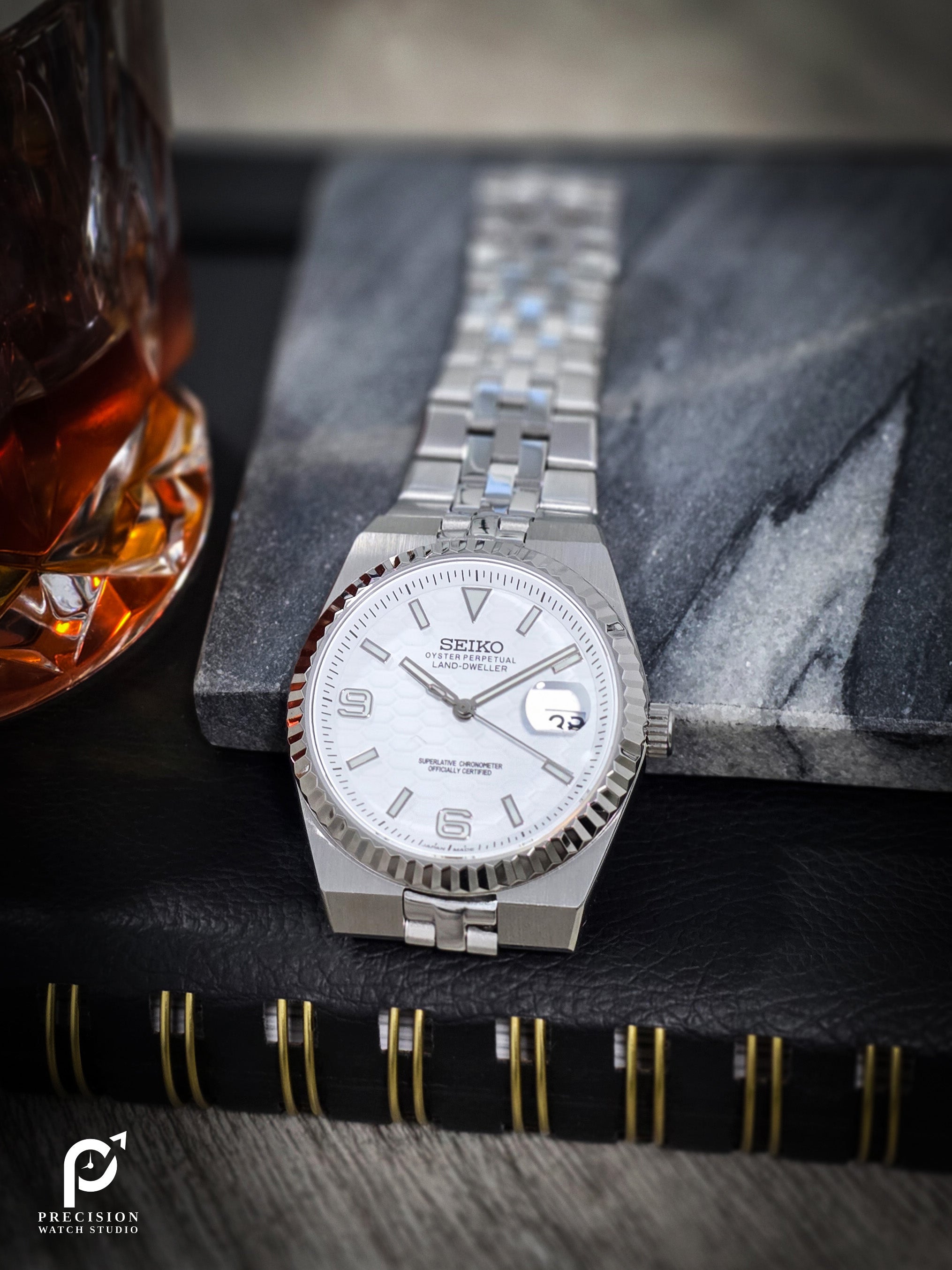 Inspired by the Hex Dweller, this hand-built watch features the tried and true NH35 automatic movement. It combines durability with classic elegance, making it the perfect timepiece for both everyday wear and special occasions.