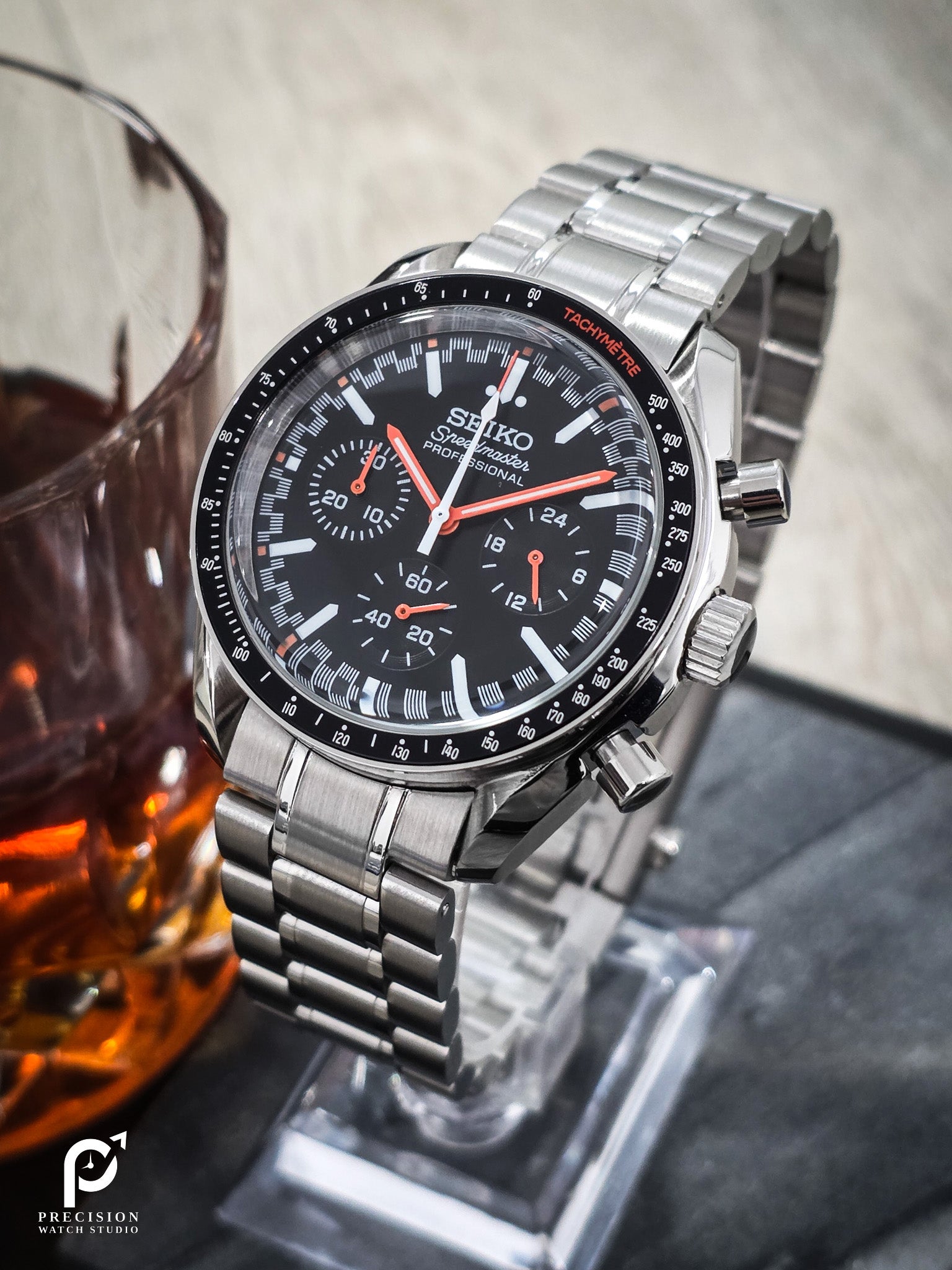 As a homage to the iconic Speedy, this hand-built watch features the hybrid VK63 chronograph movement. It combines durability with classic elegance, making it the perfect timepiece for both everyday wear and special occasions.